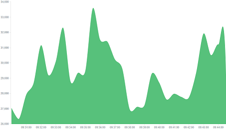 However, if we would like to see user activity trends on pages at different hours and days, a better choice will be the “Area chart”, which displays a chart with time division.