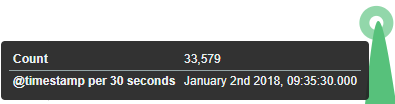 To create the first graph in the char modification panel, in the “Data” tab we add X-Axis in the “buckets” sections. In “Aggregation” choose “Histogram”, in “Field” should automatically be located “timestamp” and “interval”: “Auto” (if not, this is how we set it). Click on the icon on the panel. Now our first graph should show up.