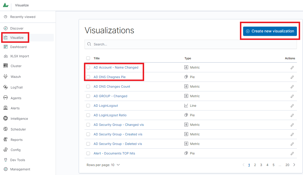 To create a visualization, go to the “Visualize” tab from the main menu. A new page will appear where you can create or load visualization.
