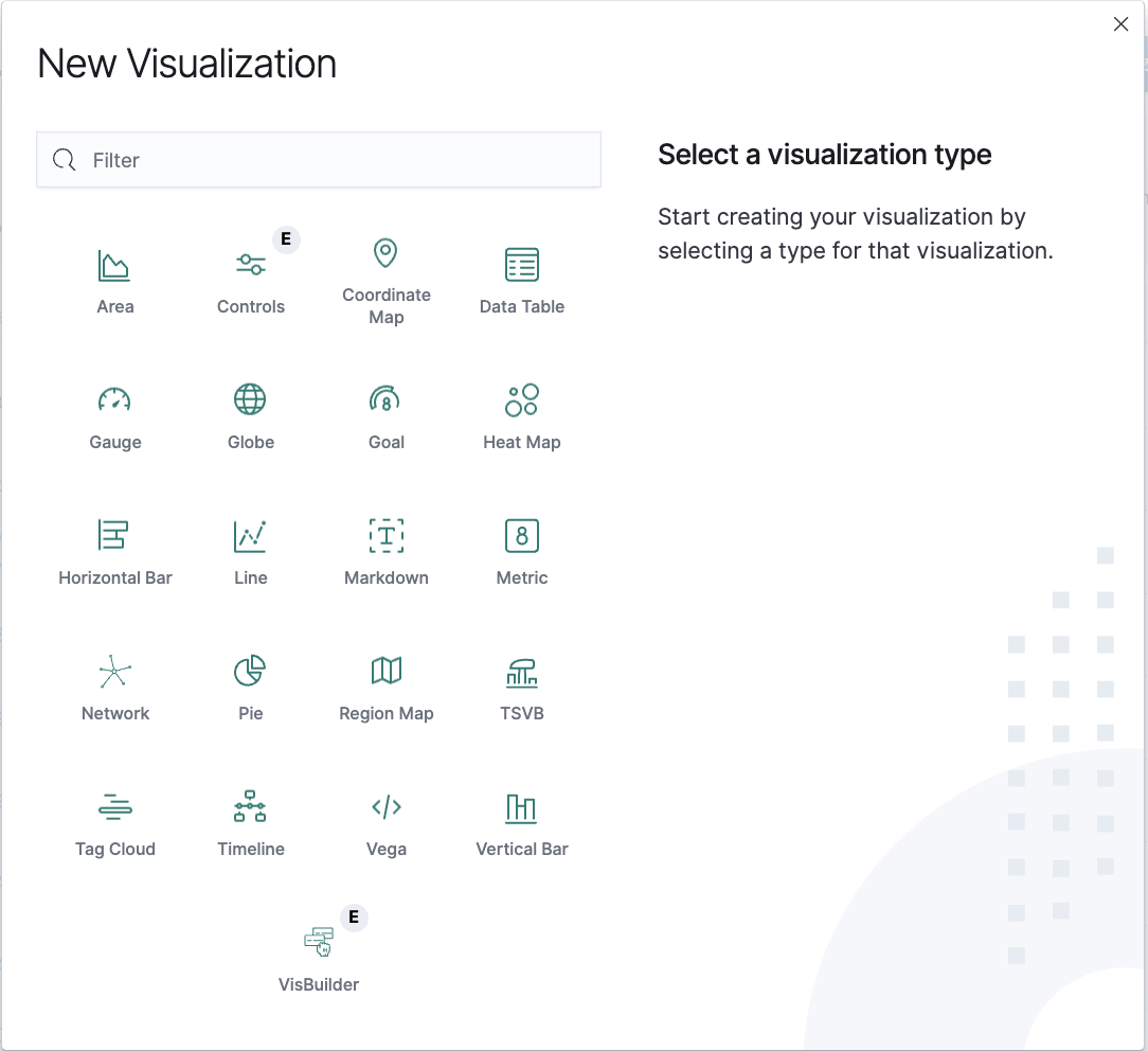 To create a new visualization, you should choose the preferred method of data presentation.