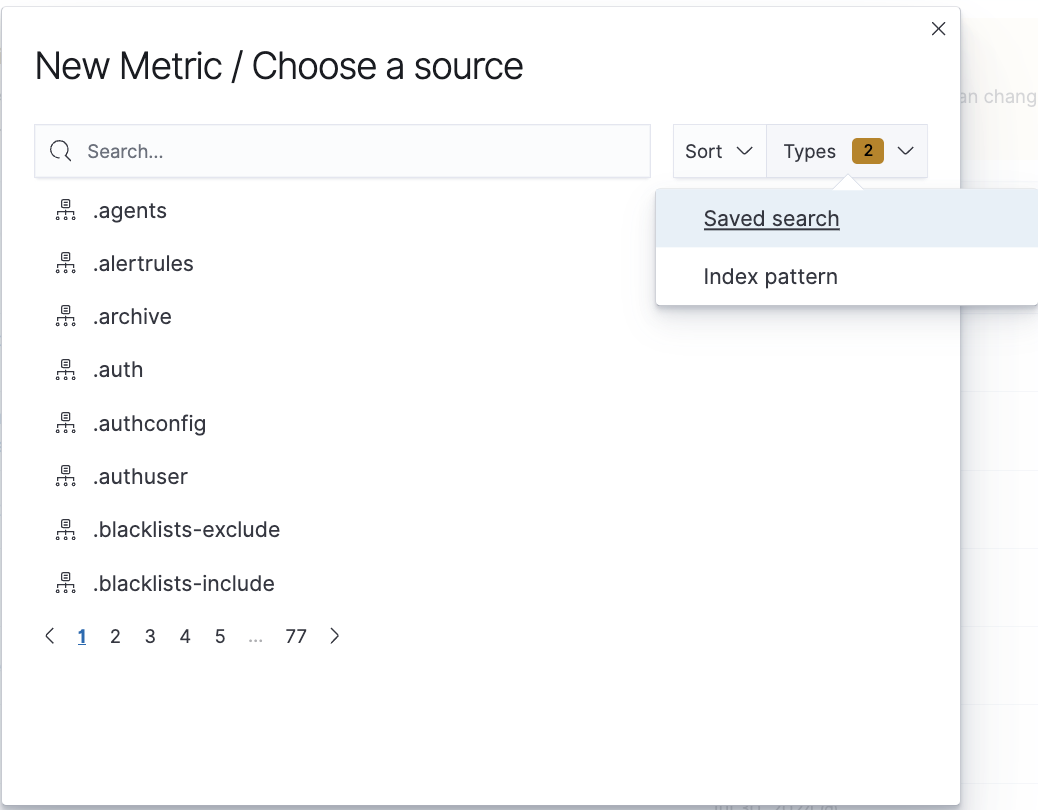 Next, specify whether the created visualization will be based on a new or previously saved query. If on a new one, select the index whose visualization should concern. If visualization is created from a saved query, you just need to select the appropriate query from the list, or (if there are many saved searches) search for them by name.