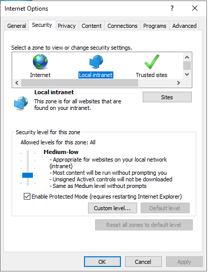 Internet Optionsfrom theToolsmenu and click onSecurityTab: