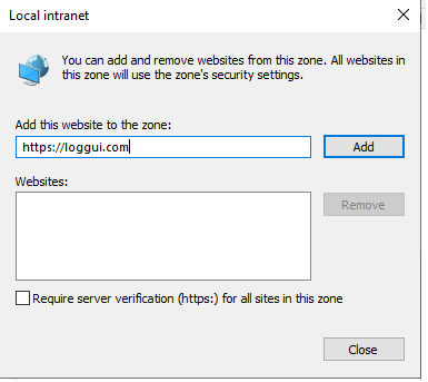 Local intranet, click onSite->Advanced-> Provide correct URL -> ClickAdd: