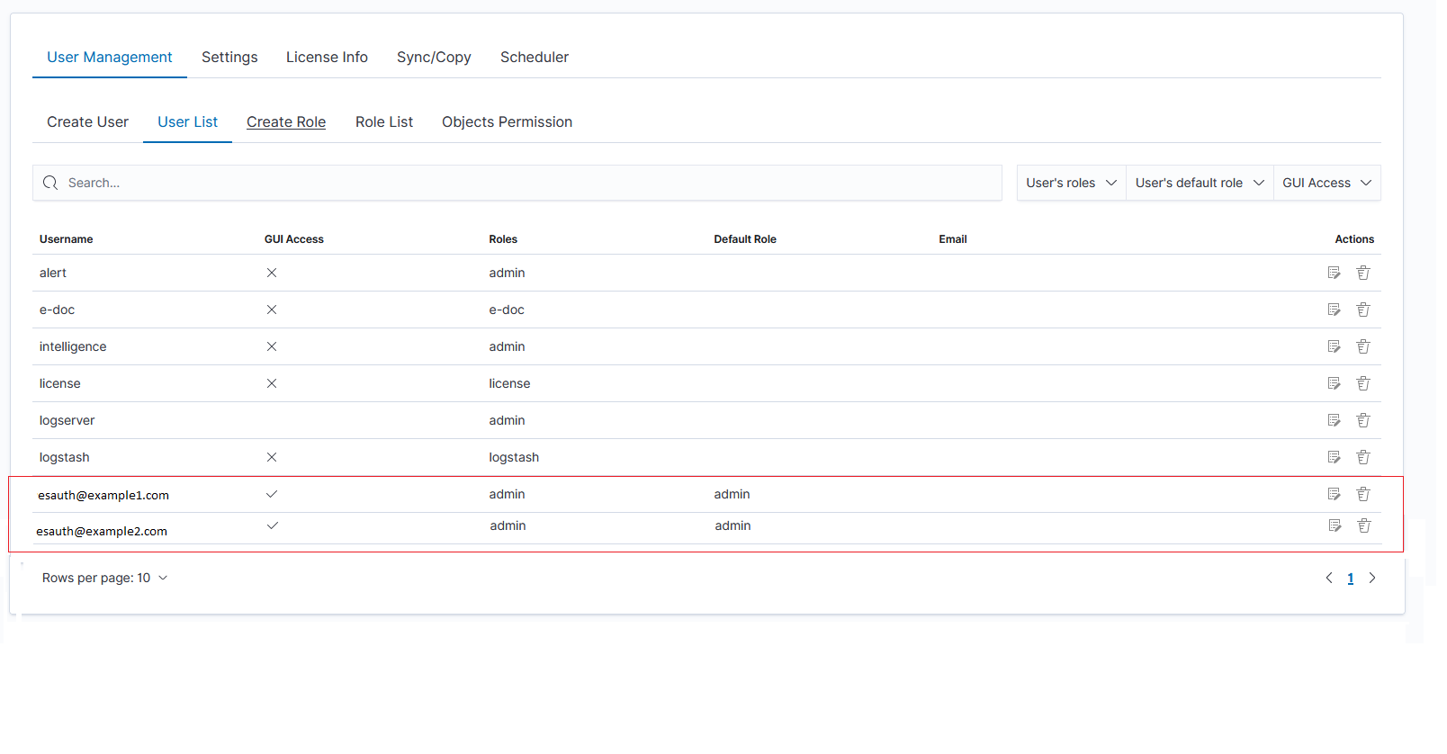 If you map roles from several domains, for example, dev.example1.com, and dev.example2.com then in the User List we will see which user from which domain with which role logged in Energy Logserver.